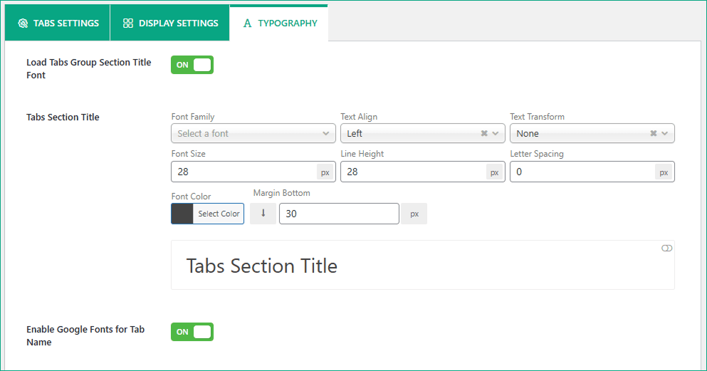 2. Navigate to the Display Settings panel, and choose how tabs will be displayed.