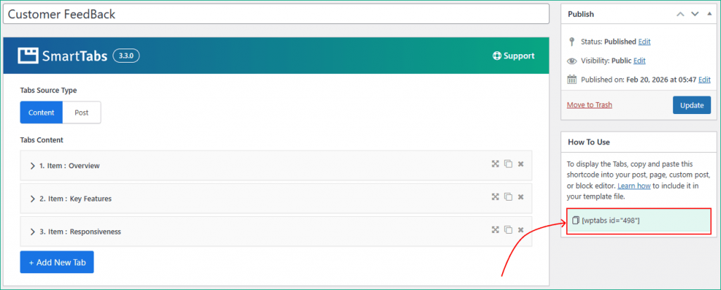 Step 4: Publish and Display Tabbed Content to a Page (Using ShortCode & Gutenberg)