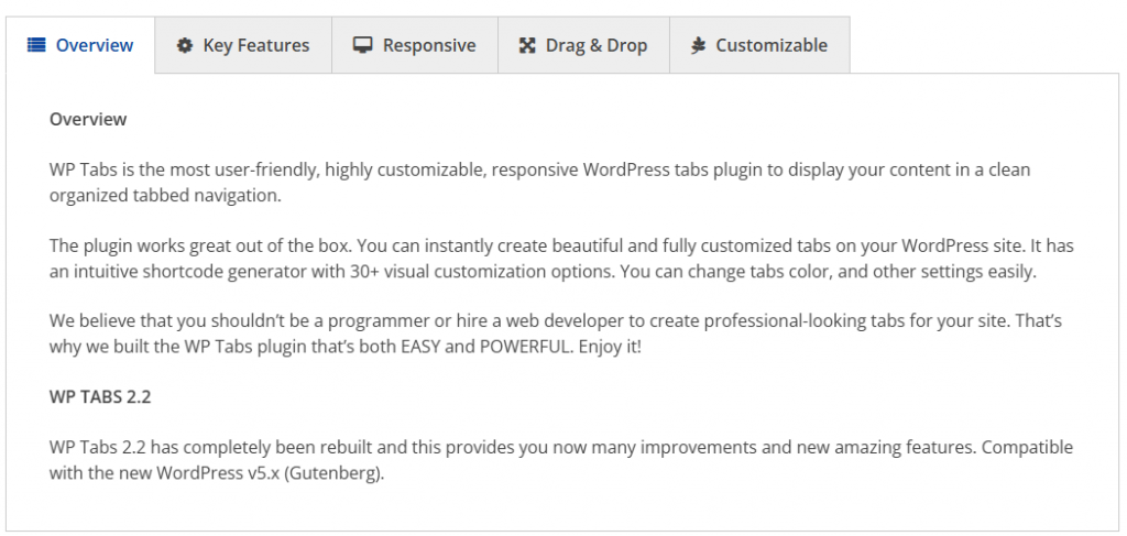 Tabs help save space and keep your content organized and easier to manage. They are especially useful for user instructions and similar texts. Tabs also make long content feel shorter and more reader-friendly. If you think your WordPress website could benefit from better content organization, adding tabs would definitely be the right solution.
