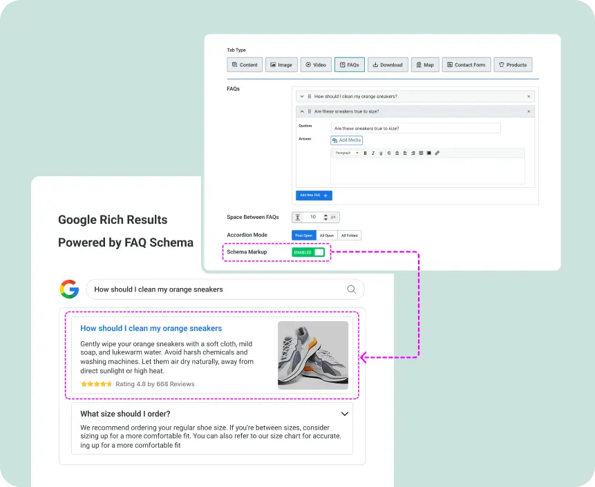 Let your FAQs shine in Google search results with automatic schema markup. Improve visibility, earn rich snippets, and drive more qualified traffic effortlessly.