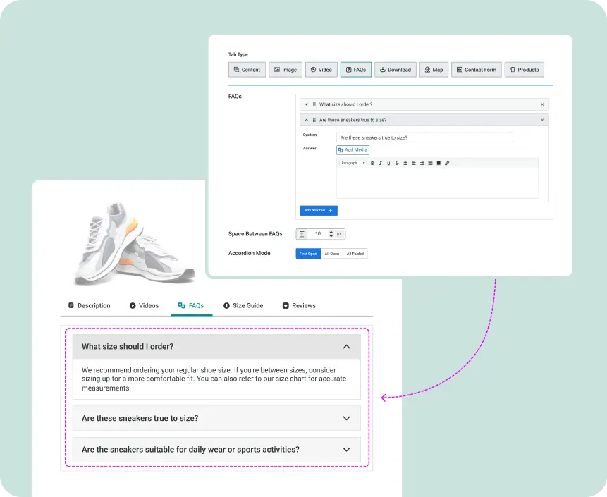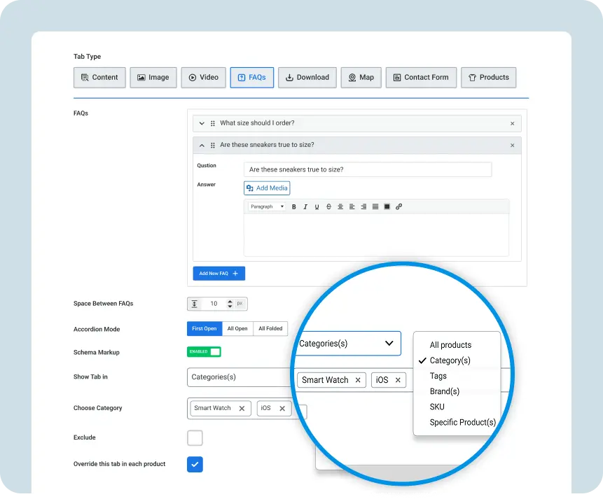 build confidence, and increase conversions with Smart Tabs’ FAQ feature.