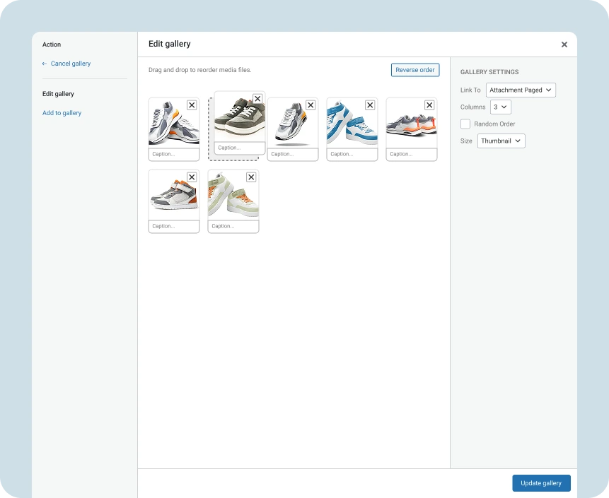 Easily fine-tune your gallery’s layout, spacing, sizing, and sorting through an intuitive interface to perfectly match your brand — no coding needed.