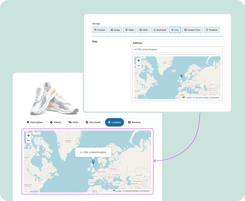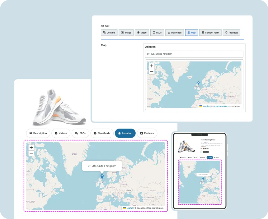 Show customers exactly where to find you! Add multiple locations — from your headquarters to pickup spots — right inside your product tabs, no extra setup needed.
