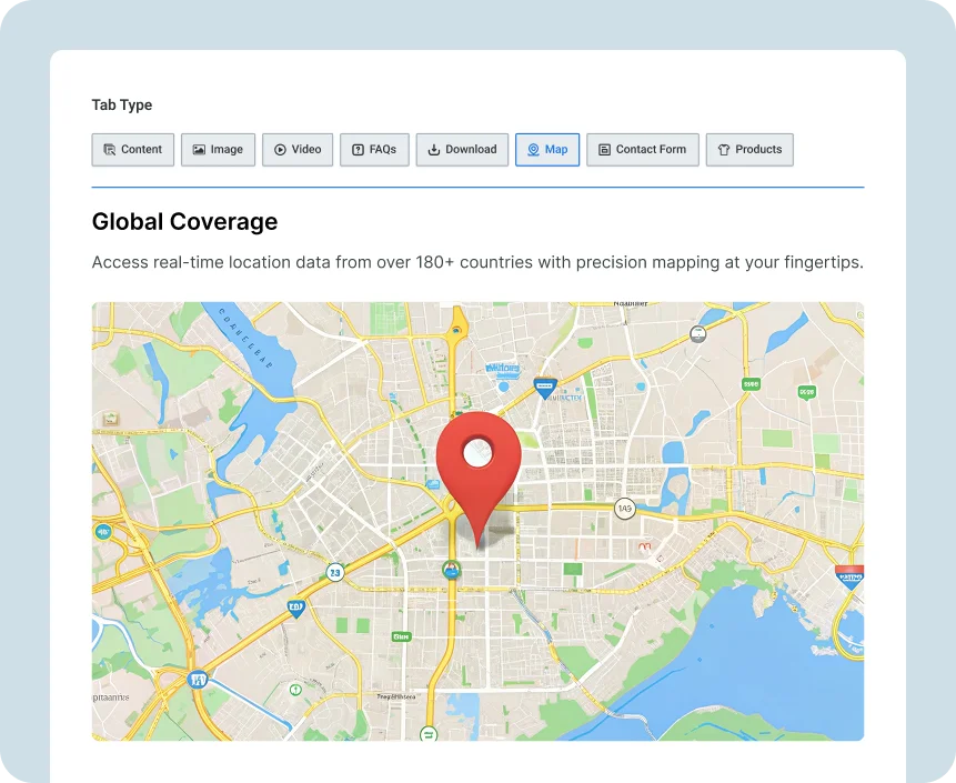 Match your tabs perfectly with your store’s look and feel. Every map tab is fully customizable, responsive, and built to shine on any device.